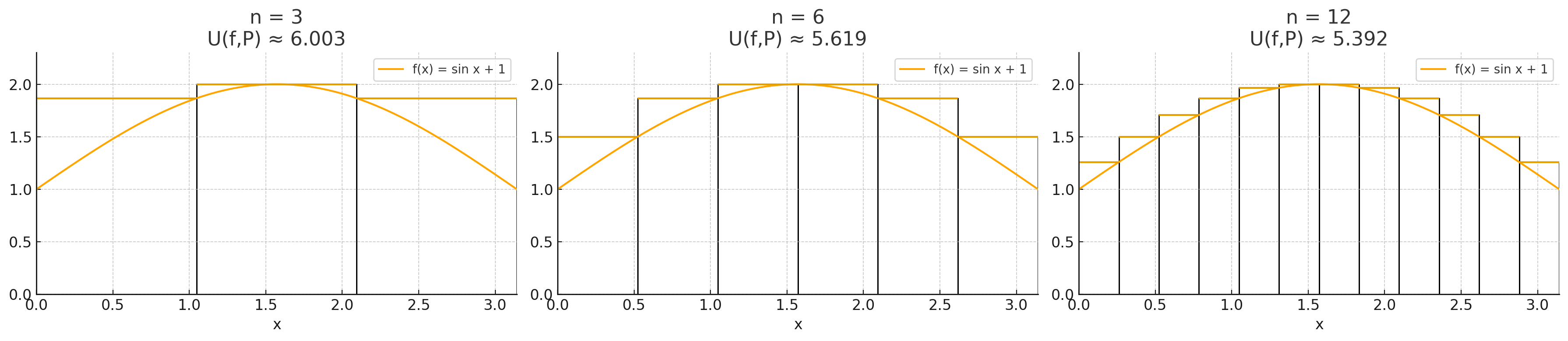 These are three possible partitions and the upper sum for each one. So far the smallest one is the third one. But then we do this for all possible partitions.